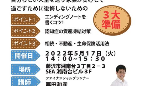下記の日程にて『第5回知って得するお葬式の知恵袋~今どきのお墓事情~』を開催いたします。