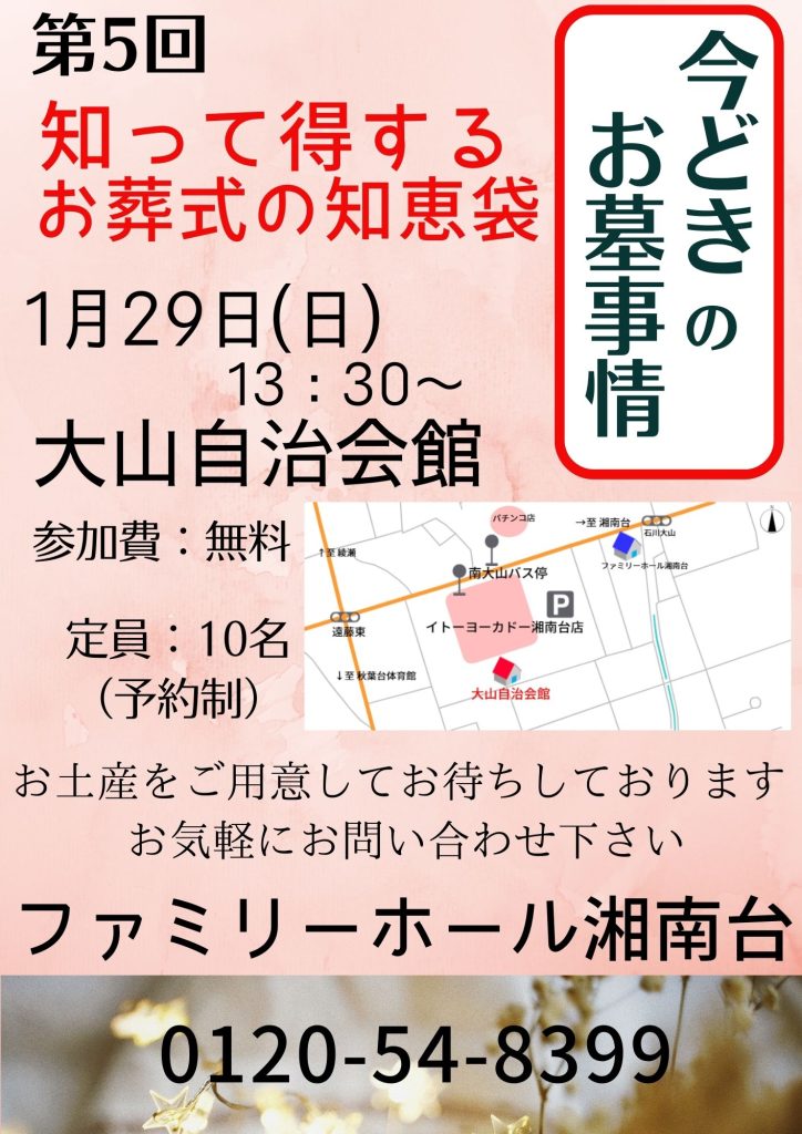 【参加費無料・完全予約制】2023年1月29日(日)13:30~『第5回知って得するお葬式の知恵袋~今どきのお墓事情~』