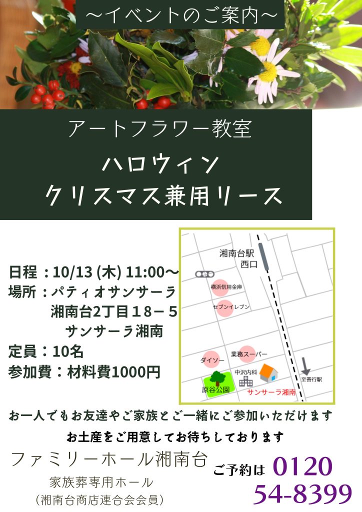 ご予約・ご不明な点がございましたらファミリーホール湘南台にお問い合わせください。