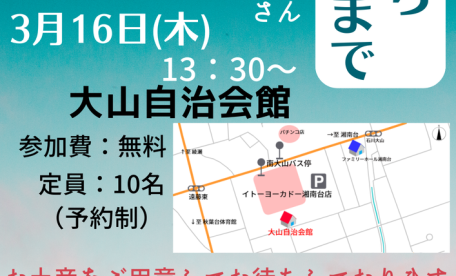 【参加費無料・完全予約制】2023年3月16日(木)13:30~『第6回知って得するお葬式の知恵袋~介護から看取りまで~』