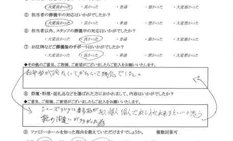 お客様よりの大切なお声を頂戴いたしました。