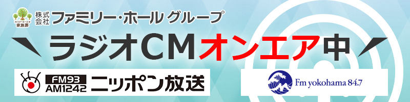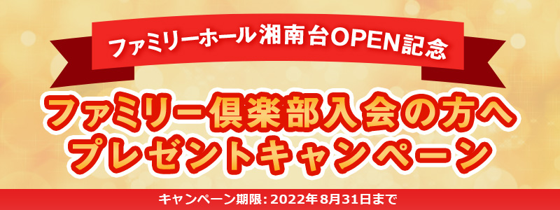 2021年6月にファミリーホール湘南台がオープンいたしました! 新斎場のオープンを記念してキャンペーンを行っております。現在オンエア中のラジオCMをお聴きになった方限定で「ファミリー倶楽部」入会時にプレゼントをご用意しています。